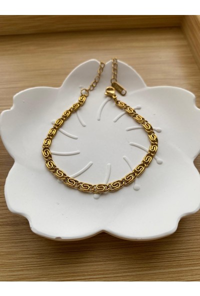 Arasera Çelik Kuyumcu Model Altın Renk Su Yolu Bileklik