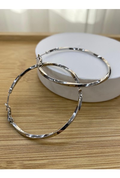 Arasera Çelik Gümüş Renk 4 cm Çaplı Büyük Burma Halka Küpe