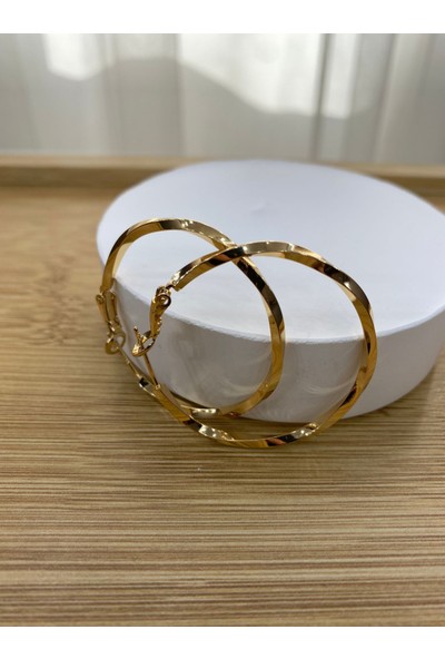 Arasera Çelik Gold Renk 3 cm Çaplı Büyük Burma Halka Küpe