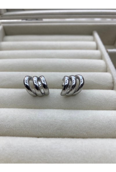Arasera Çelik Gümüş Renk Tek Küpe 3'lü Görünüm