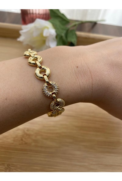 Arasera Çelik Zirkon Taşlı Kuyumcu Model Altın Renk Bileklik