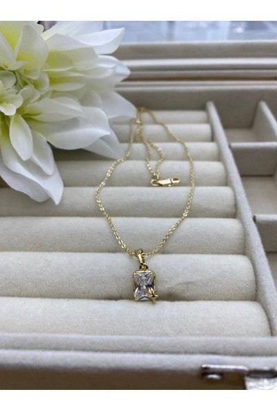 Arasera Çelik Zirkon Taşlı Altın Renk Kolye