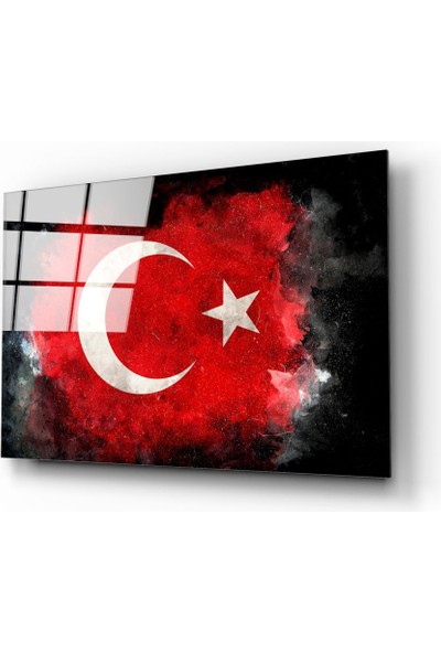 Aras Glass Art Türk Bayrağı Siyah Fon Cam Tablo