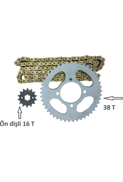 Aras Moto Honda Cbr 125 R Performans Zincir Dişli Takımı Arka 38T -Ön 16T Oringli Gold ZINCIR(2011-18)ARASMOTO