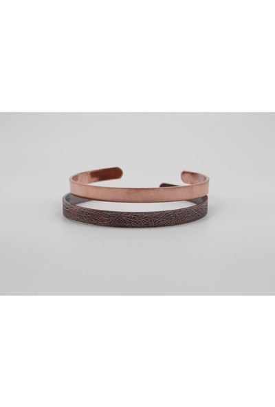 2'li Set Cam Kırığı ve Minimalist Düz Saf Bakır Bileklik
