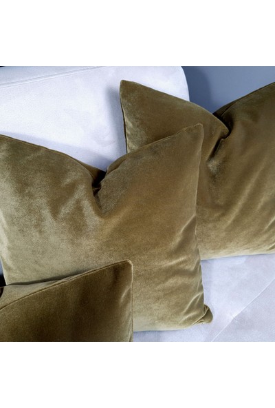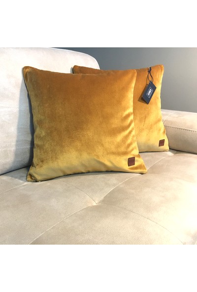 Arasta Design 2'li Kırlent Kılıfı Camel Sarı Düz Renk Kadife, 43X43 cm