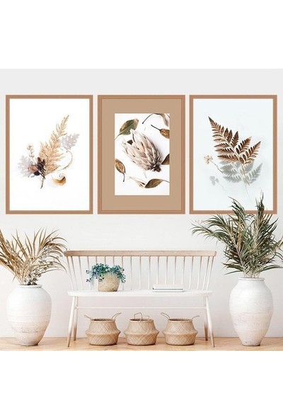 Kahverengi Otlar 1 Üçlü Çerçeve ve Poster Seti - B1056