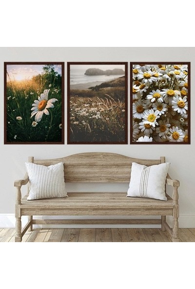 Papatyalar Üçlü Çerçeve ve Poster Seti - B1025