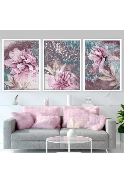 Pembe Lotus Üçlü Çerçeve ve Poster Seti - B1032