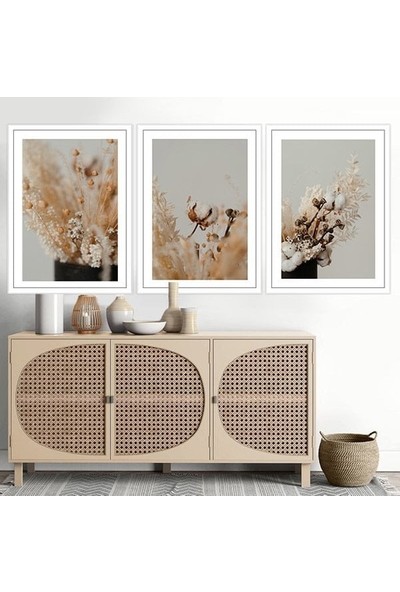 Pamuk Dalları 3 Üçlü Çerçeve ve Poster Seti - B1058