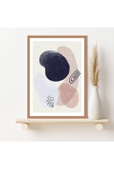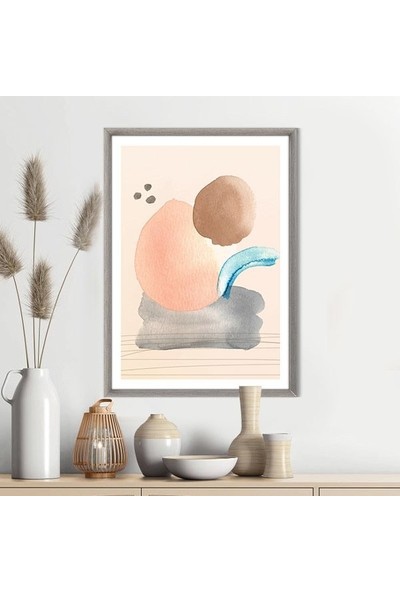 Sulu Boya Pembe - Kahve -Gri Temalı 3 Çerçeve ve Poster - IL1060