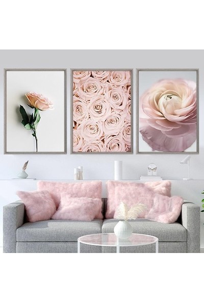 Pembe Güller Üçlü Çerçeve ve Poster Seti - B1031