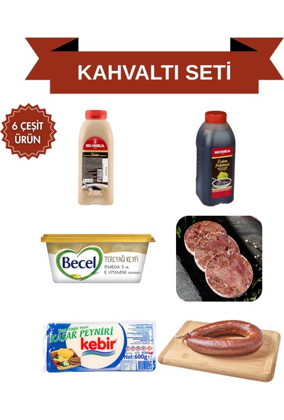 Araz Et Premium Gurme Set (6 Çeşit) - 1 Adet Kebir Kaşar 600GR + 1 Adet 1kg Sucuk + 1 Adet 500GR Kavurma + 1 Adet 550GR Koska Tahin + 1 Adet Becel Yağ+ 1 Adet 700GR Koska Üzüm Pekmezi