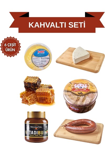 Araz Et Gurme Kahvaltı Seti (6 Çeşit) - 1 Adet Kebir Tereyağ 250GR + 1 Adet Tulum Peyniri 500GR + 1 Adet Bal 500GR + 1 Adet Üçel Helva + 1 Adet Tadıbu + 1 Adet 1kg Sucuk