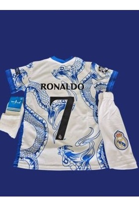 R€al Mædrid Cr7 Cristiano Ronaldo Özel Tasarım Dragon Bayaz-Mavi Çocuk Forması 3 Lü Set