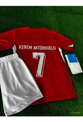T.ü.r.k.i.y.e Milli Takım Kerem Aktürkoğlu 7 Kırmızı Çocuk Forması (Forma Şort Çorap)